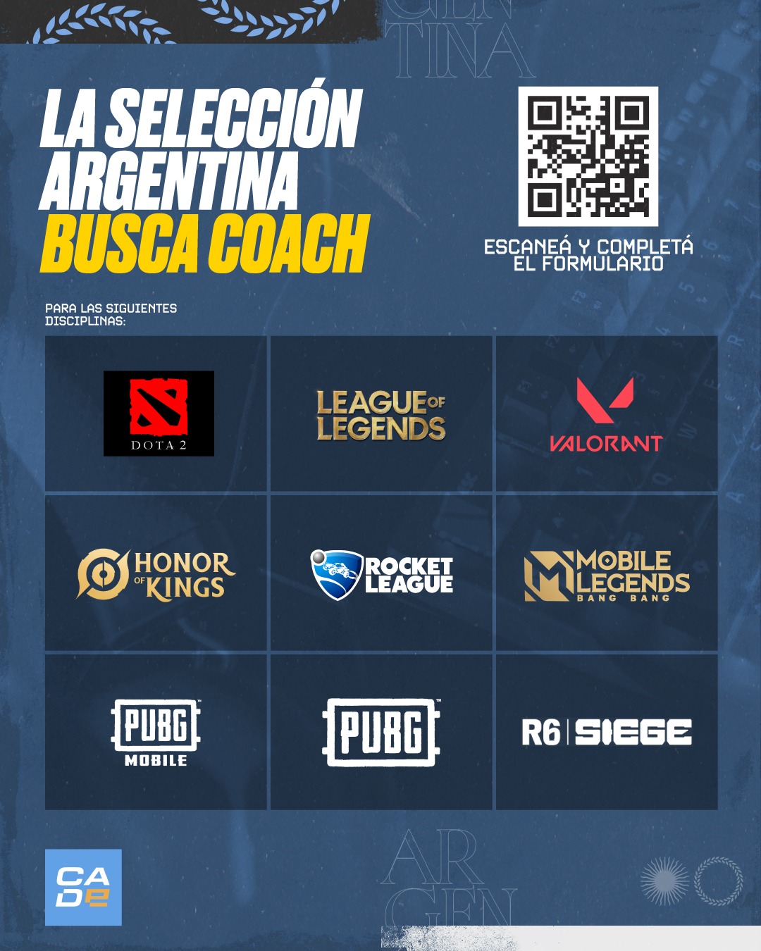 En paralelo al armado del equipo, la CADE abrió una convocatoria para ampliar la base de talento de cara a la ENC 2026. La búsqueda no se limita solo a nombres conocidos: el objetivo es detectar y sumar perfiles de todo el país que puedan aportar al desarrollo competitivo de la Selección. En esta etapa, el foco está puesto especialmente en coaches de distintas disciplinas, con la idea de construir equipos sólidos desde lo estratégico y potenciar el nivel de preparación de los jugadores.